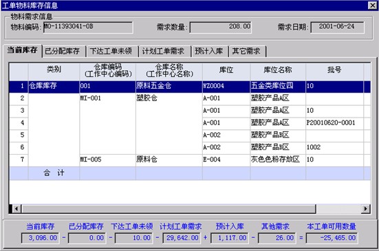 現(xiàn)有可用庫存的數(shù)量是否可以滿足工單的子料需求。 |