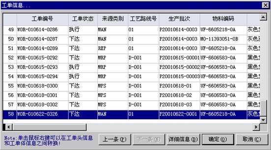 3、 選定工單后,可對(duì)選定工單進(jìn)行分割調(diào)整,工單狀態(tài)為下達(dá)和執(zhí)行狀態(tài)才能進(jìn)行分割,其他狀態(tài)的工單就不允許進(jìn)行分割.