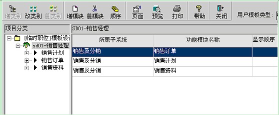 首先可以從右上角的’用戶模板類型’中選擇你所要求修改的用戶模板。然后可以在左邊的樹控件中定義此模板類型所包括的功能類別﹐在功能類別之下才可以掛上所要求的功能項(xiàng)。具體的操作如下﹕
