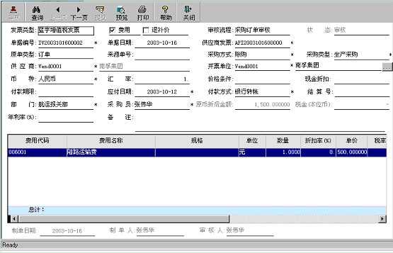 用戶可錄可不錄。如果錄入了折扣率在計算時系統(tǒng)會進行處理。此處錄入的折扣率是鐘對此發(fā)票的所有物料的。 |