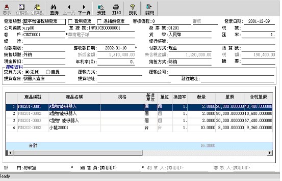 必錄項(xiàng)目。在銷售類型欄打開下拉資料,選取一種即可。系統(tǒng)給出了兩種銷售類型,內(nèi)銷、外銷,用戶不可以維護(hù)。 |