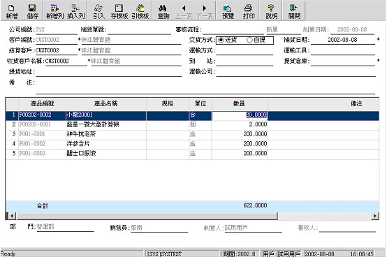 在此可以錄入補貨單。資料經(jīng)審核后,則可據(jù)此進行銷售補貨出庫操作。