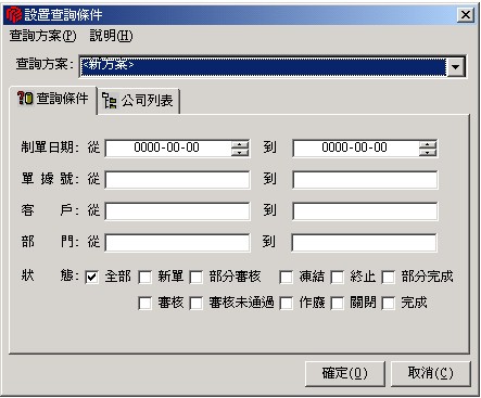 查詢方式有三種:定位、自定義查詢、查詢。查詢接口如下圖所示,接口上列有查詢條件:制單日期﹑單據(jù)號﹑客戶﹑部門﹑單據(jù)狀態(tài)?蓪涌谏系臈l件進行任意組合,具體設定請參見附錄。